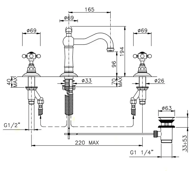 Nicolazzi Half Dome Смеситель для раковины на 3 отверстия, с донным клапаном, цвет: хром.