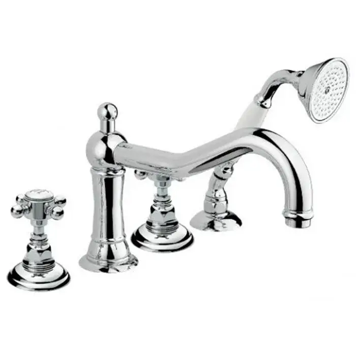 Nicolazzi Half Dome Смеситель для ванны на 4 отверстия, изливом 246мм и ручным душем, цвет: хром