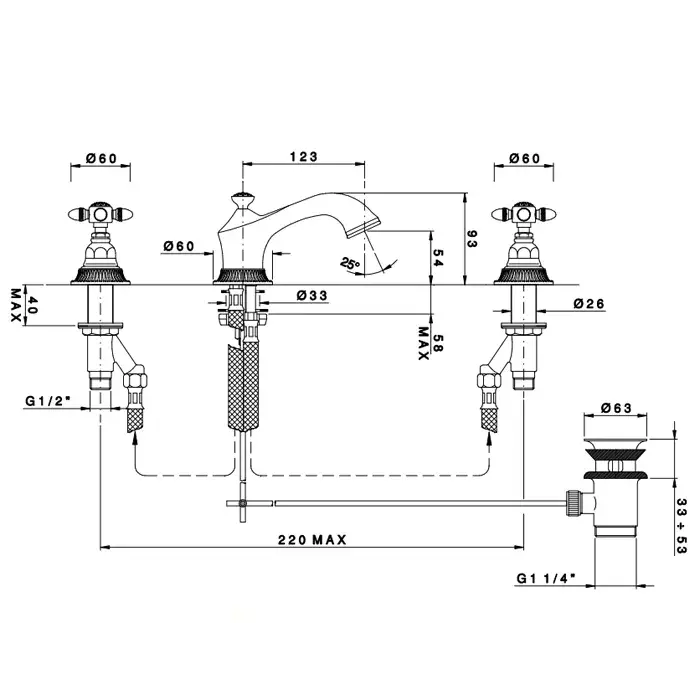 Nicolazzi Impero Смеситель для раковиныс автомат. изливом, на 3 отв., цвет: хром 1208CR36L