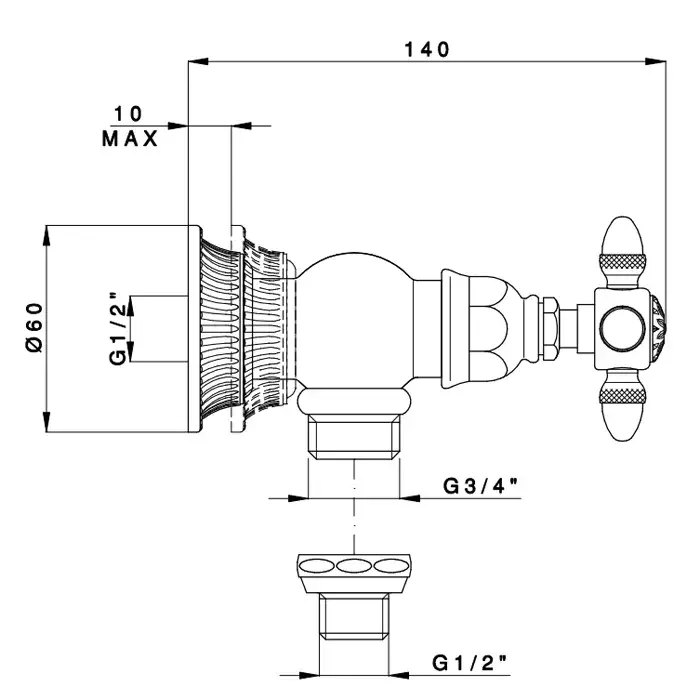 Nicolazzi Impero Вентиль запорный для стиральной машины, цвет: хром 1247CR36