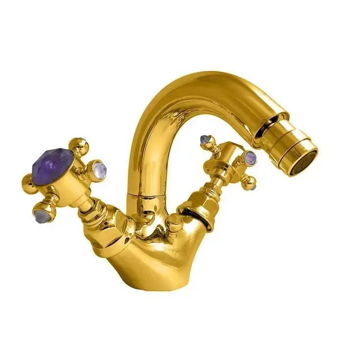 Nicolazzi Le Pietre Смеситель для биде с 2мя ручками, с донным клапаном, излив: 132мм, цвет: золото