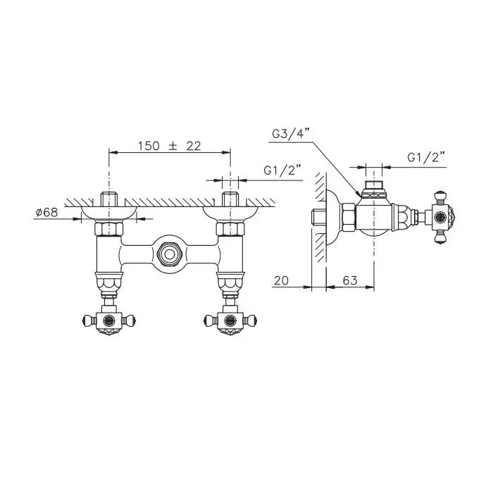 Nicolazzi Le Pietre Смеситель для ванны с 2мя ручками, вывод сверху 1/2, (для душ. стойки) цвет: хром
