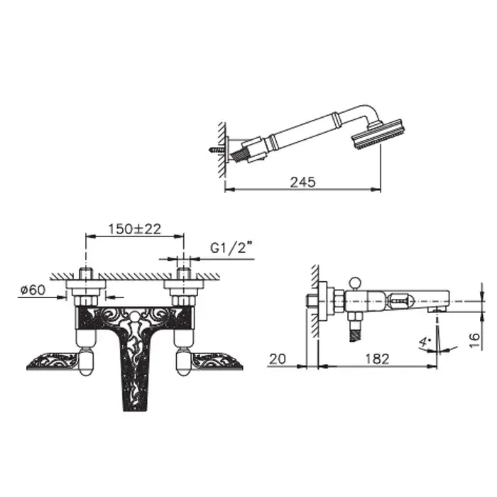 Nicolazzi Liberty Смеситель для ванны, настенный, цвет хром 1002CR16