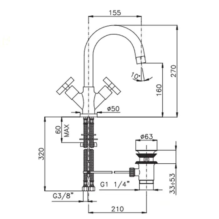Nicolazzi Monte Croce Смеситель для раковины с 2-мя ручками, излив 15,5 см, цвет: хром 2236CR27