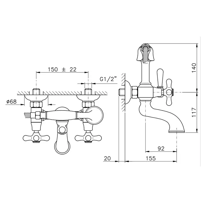 Nicolazzi Nuova Brenta Смеситель для раковины с 2мя ручками, настенный, излив: 160мм, цвет: хром