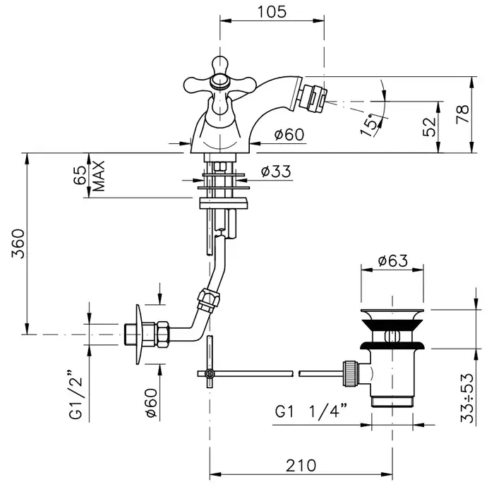 Nicolazzi Nuova Brenta Смеситель для биде на 1 отверстие, излив 10,5 см, цвет бронза 2534BZ