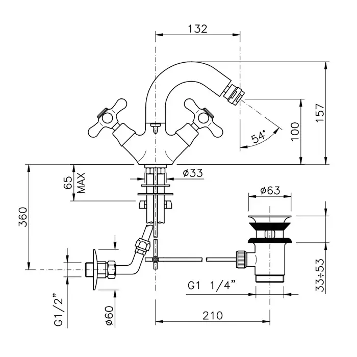 Nicolazzi Nuova Brenta Смеситель для биде на 3 отверстия, с донным клапаном, излив: 132мм, цвет: хром