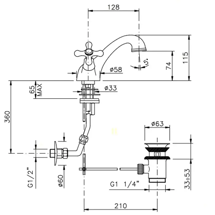 Nicolazzi Nuova Brenta Смеситель для раковины на 1 отверстие, излив: 128мм, с донным клапаном, цвет: хром