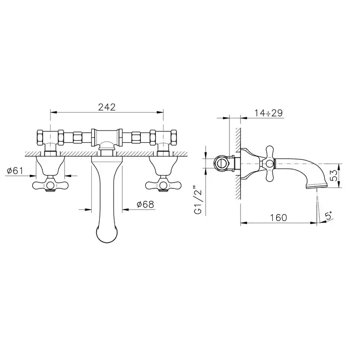 Nicolazzi Nuova Brenta Смеситель для раковины с 2мя ручками, настенный, излив: 160мм, цвет: хром