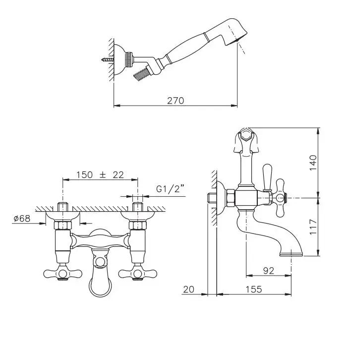 Nicolazzi Nuova Brenta Смеситель для ванны с 2мя ручками, настенный, с душевой лейкой, цвет: бронза