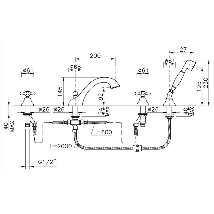Nicolazzi Nuova Brenta Смеситель на борт ванны на 4 отверстия, излив 20 см, цвет хром 2504CR