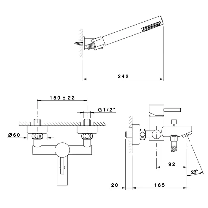 Nicolazzi Olympus Смеситель для душа на 2 отверстия, настенный, вывод снизу 1/2", цвет: хром