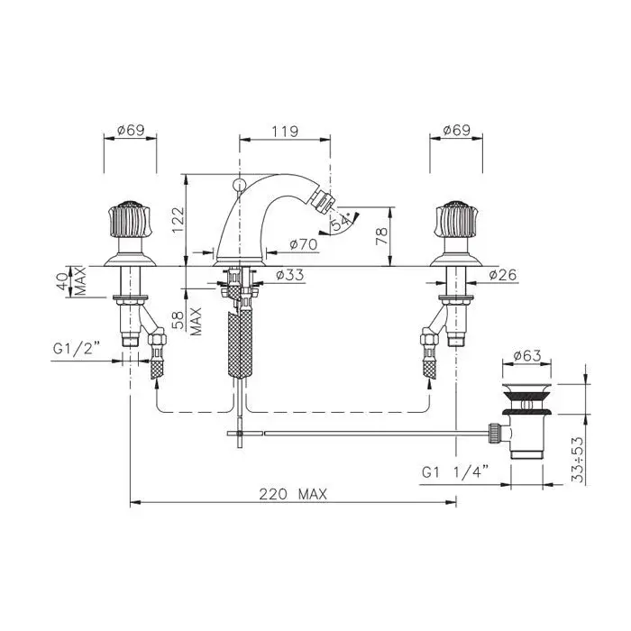 Nicolazzi Pantheon Смеситель для биде, на 3 отв., с донным клапаном,цвет: хром