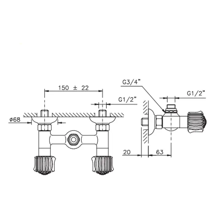 Nicolazzi Onice Смеситель для ванны настенный с душем duplex, цвет: хром