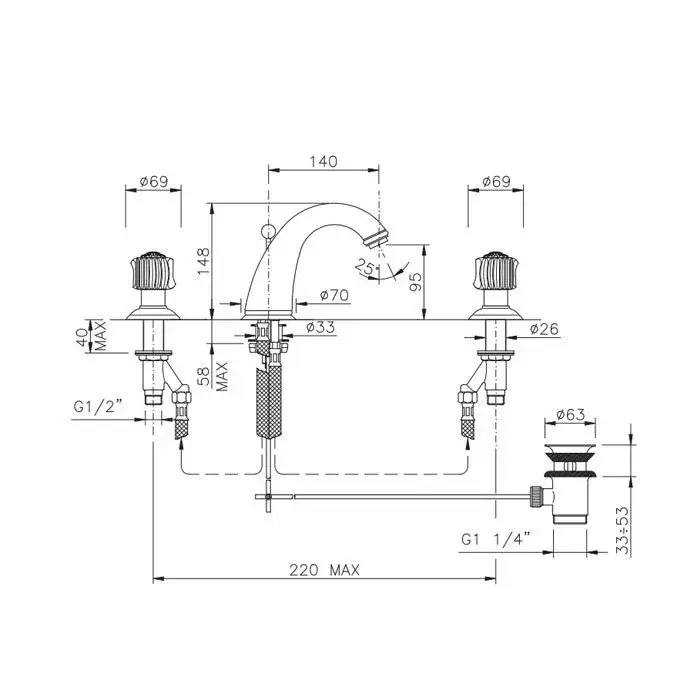 Nicolazzi Pantheon Смеситель для раковины, на 3 отв., с донным клапаном,цвет: хром