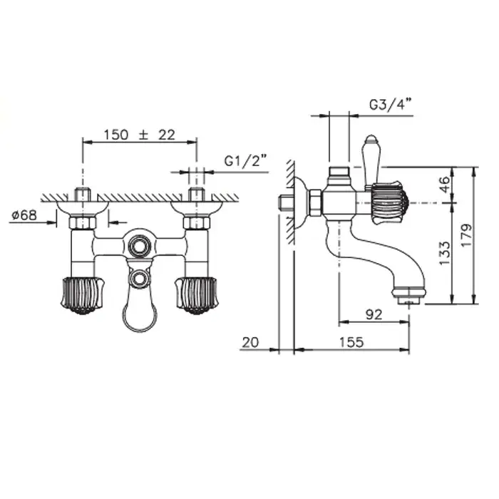 Nicolazzi Onice Смеситель для ванны настенный для душевой стойки, излив 15,5 см, цвет хром 2100CR09O