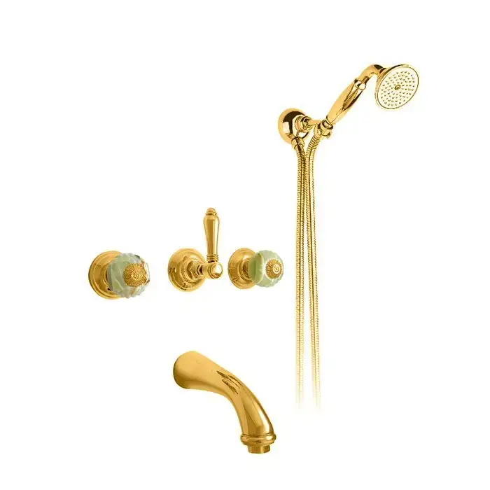 Nicolazzi Onice Смеситель для ванны с 2мя ручками, встроенный, вкл. внутр часть + комплект руч. душа, цвет: золото