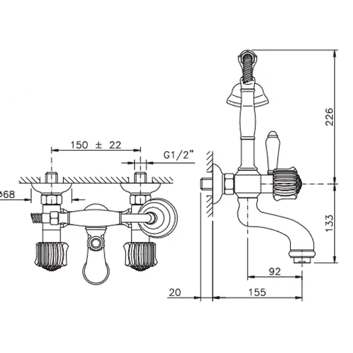 Nicolazzi Onice Смеситель для ванны настенный с душем duplex, цвет: хром