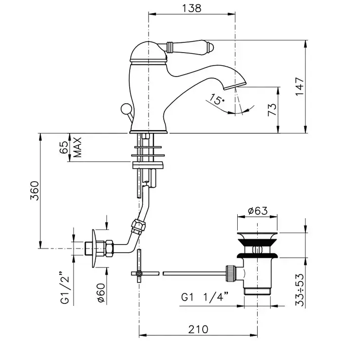 Nicolazzi Petit Mont Blanc Смеситель для раковины, на 3 отв.,с донным клапаном, излив: 165 мм, цвет: хром