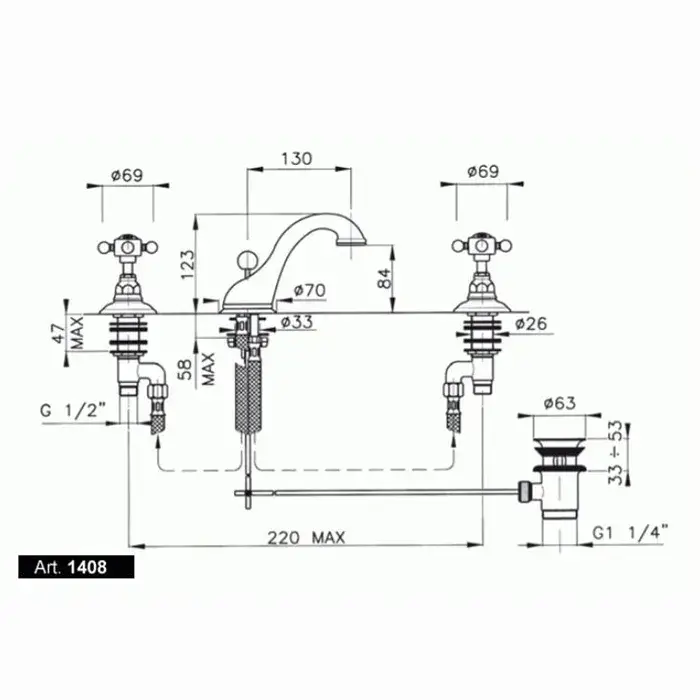 Nicolazzi Petit Mont Blanc Смеситель для раковины, на 3 отв.,с донным клапаном, излив: 165 мм, цвет: хром