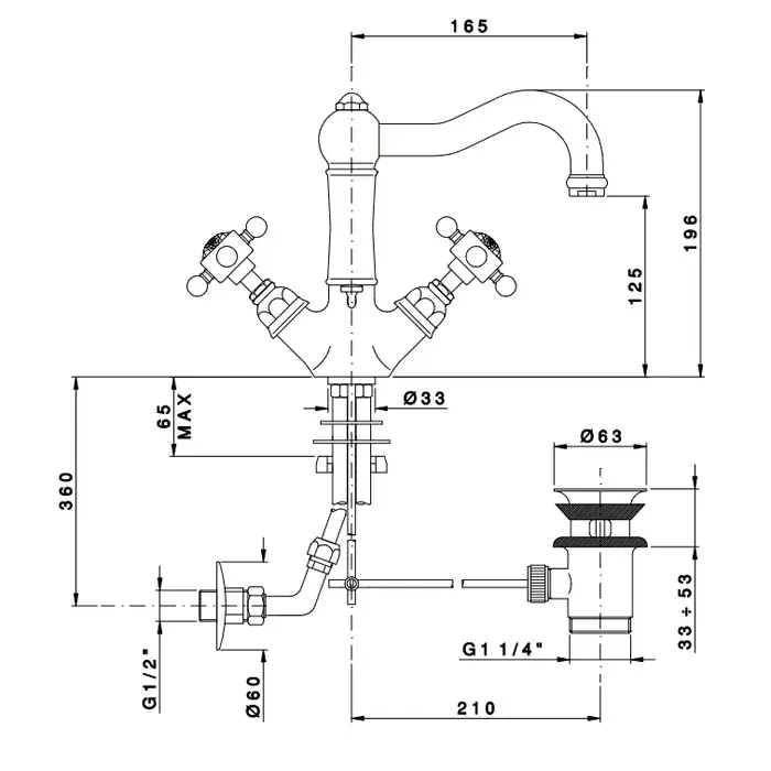 Nicolazzi Petit Mont Blanc Смеситель для раковины, на 3 отв.,с донным клапаном, излив: 165 мм, цвет: хром
