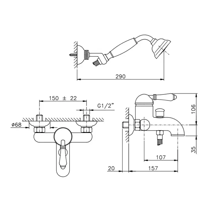 Nicolazzi Petit Mont Blanc Смеситель для ванны однорычажный, настенный, цвет: хром 3401CR76