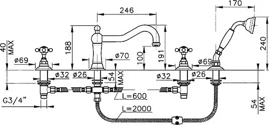 Nicolazzi Petit Mont Blanc Смеситель на борт ванны с душем на 4 отв., цвет: Bronze Plated 1449BZ78