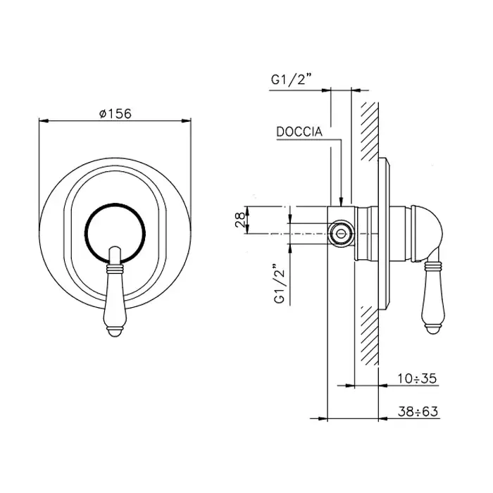 Nicolazzi P.m. Blanc Смеситель для душа, встраиваемый, излив: 160мм и ручным душем, ручки белая керамика, цвет: тёмная бронза