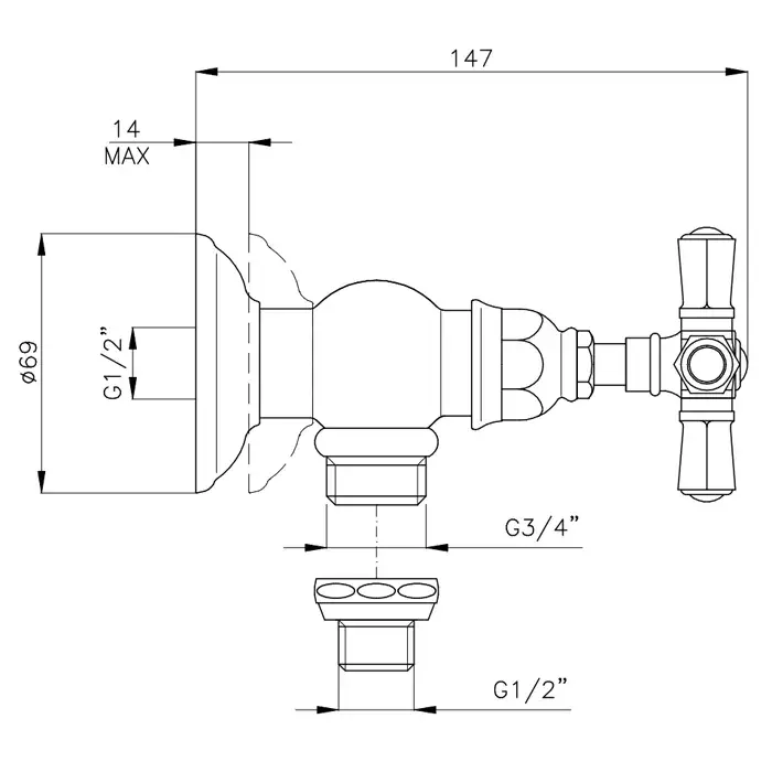 Nicolazzi Teide Four Вентиль запорный для стиральной машины 3/4, цвет: хром