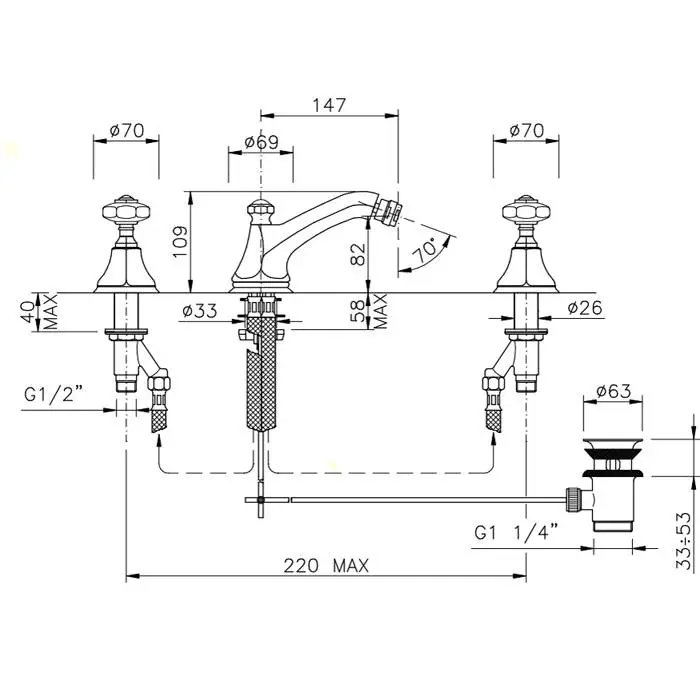 Nicolazzi Teide Смеситель для биде на 3 отверствия, излив: 147 мм, ручки Crystal handle, цвет: хром