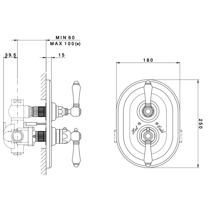 Nicolazzi Termostatico Смеситель для душа, встраиваемый, термостатический, на 1 источник, ручки Dames Anglaises, цвет: бронза