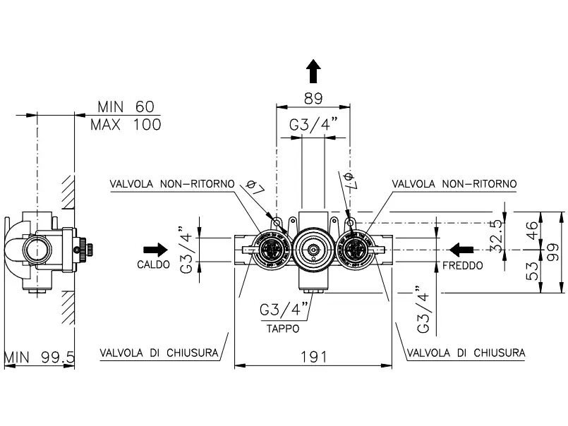 Nicolazzi Termostatico Внутренняя часть термостатического смесителя 3/4, без запорного вентиля 4913