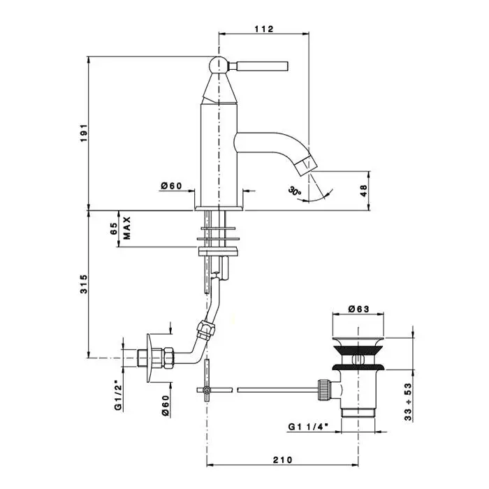 Nicolazzi Torre Смеситель для раковины на 1 отверстие, с донным клапаном, излив: 112мм, цвет: хром