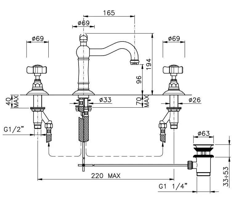 Nicolazzi Tradizionale Смеситель для раковины на 3 отверстия, цвет: бронза 1409BZ18
