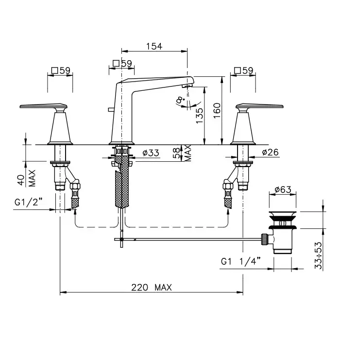 Nicolazzi Vincent Смеситель для раковины настенный, на 3 отв, излив: 177мм, цвет: хром