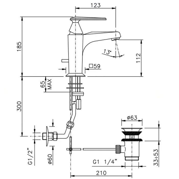 Nicolazzi Vincent Смеситель для раковины на 1 отверстие, с донным клапаном, цвет: хром 3002CR35