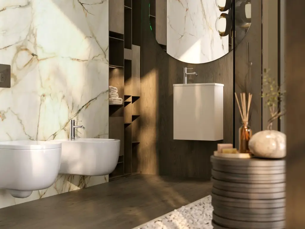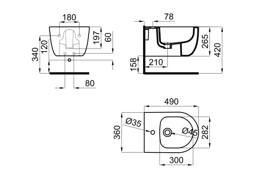 NOKEN ACRO COMPACT Комплект керамики - унитаз с сиденьем и биде, 49 см, белый