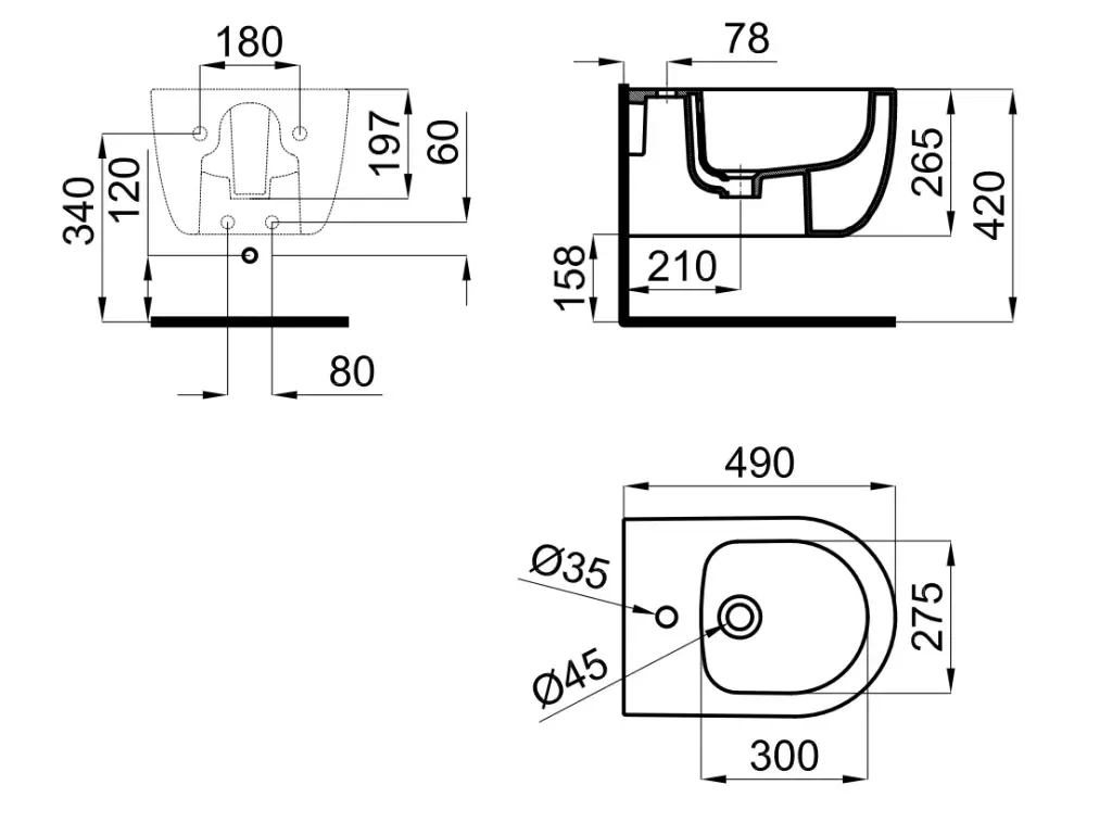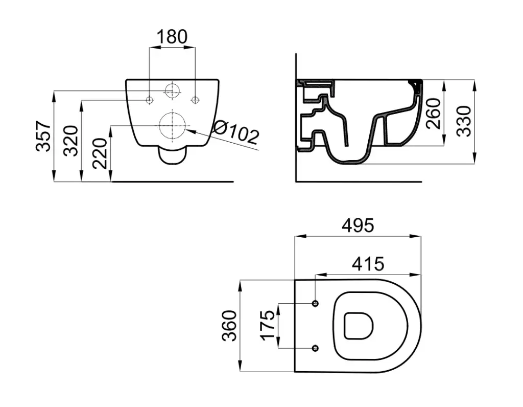 NOKEN ACRO COMPACT Комплект унитаза подвесного с сиденьем и биде, Matt black