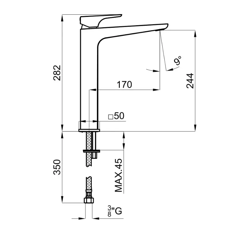 NOKEN ACRO COMPACT Смеситель однорычажный для раковины, с высоким изливом, БЕЗ ДК, 5 л/мин, хром