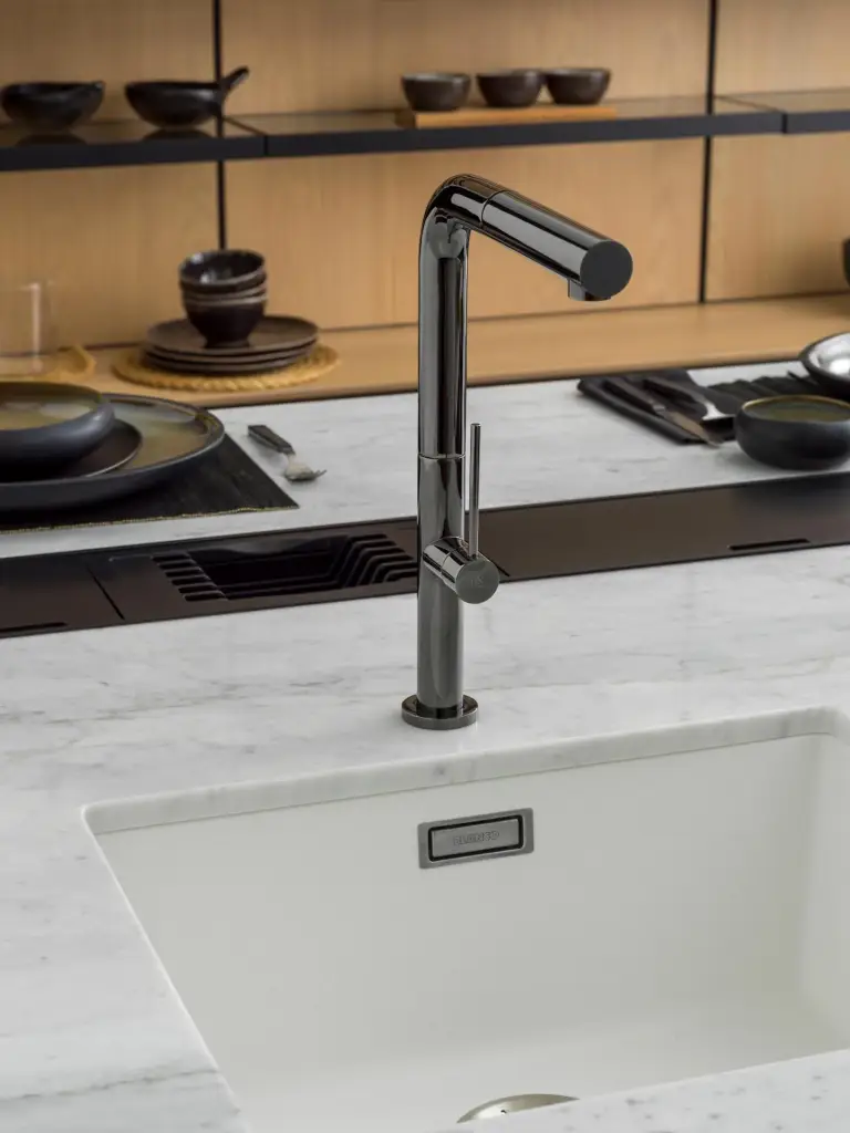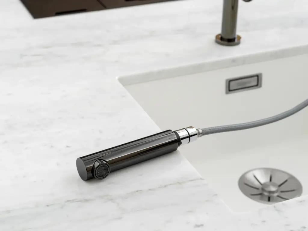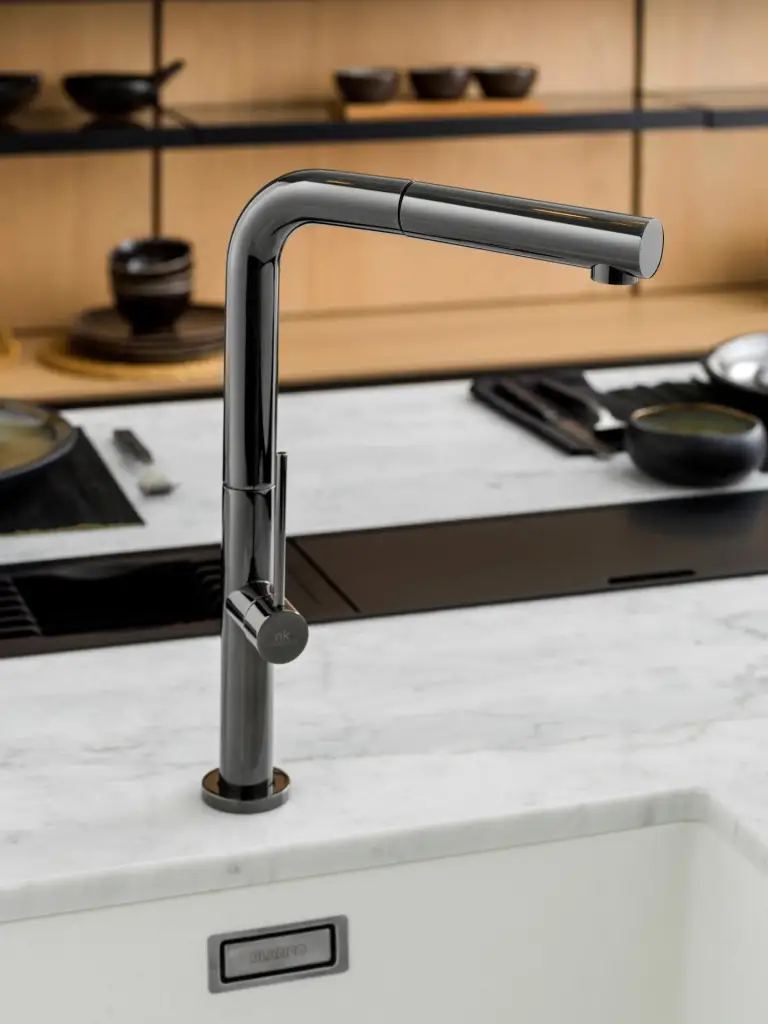 NOKEN BRIDGE SLIM Однорычажный смеситель для мойки, поворотный излив, выдвижной душ, титан