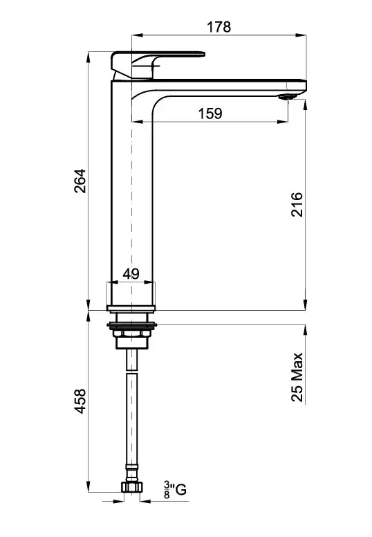 NOKEN CONCEPT N Однорычажный смеситель для раковины с высоким изливом, 5 л/мин, БЕЗ ДК, хром