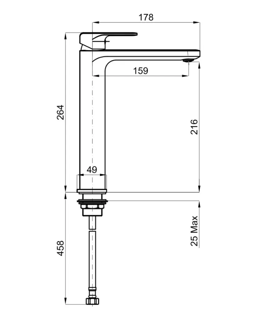 NOKEN CONCEPT N Однорычажный смеситель для раковины с высоким изливом, 5 л/мин, БЕЗ ДК, хром