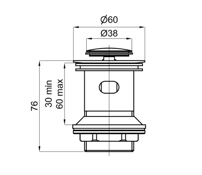 NOKEN Донный клапан (кнопка-клик) с переливом, brushed stainless steel
