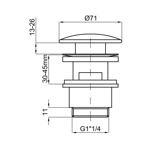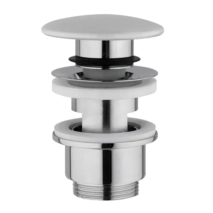 NOKEN Донный клапан (кнопка-клик) с переливом, керамическая кнопка, белый