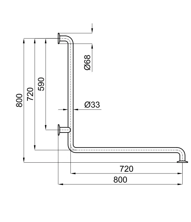 NOKEN EASY PMR Штанга горизонтальная угловая 70x74 см, без вертикальной штанги, хром