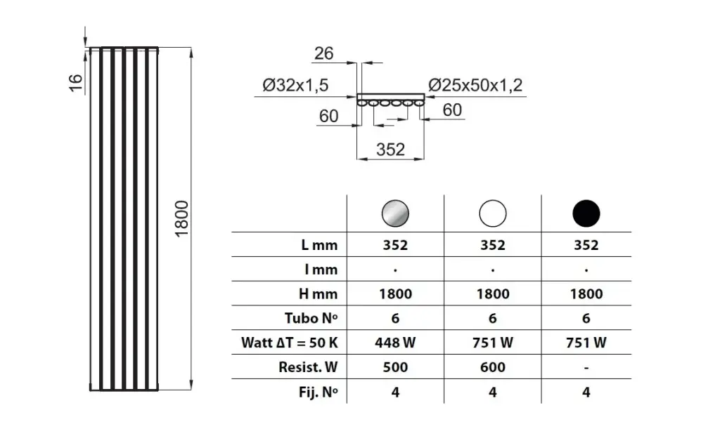 NOKEN ESSENCE C (EL1) Радиатор электрический с резистором 352xH1800 мм, 500W, хром