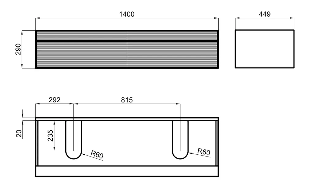 NOKEN ESSENCE C Модуль подвесной, ящики с доводчиком, 1400хН290х449 мм, грецкий орех