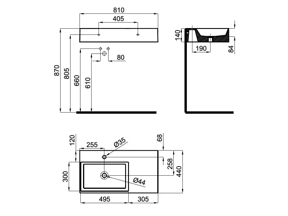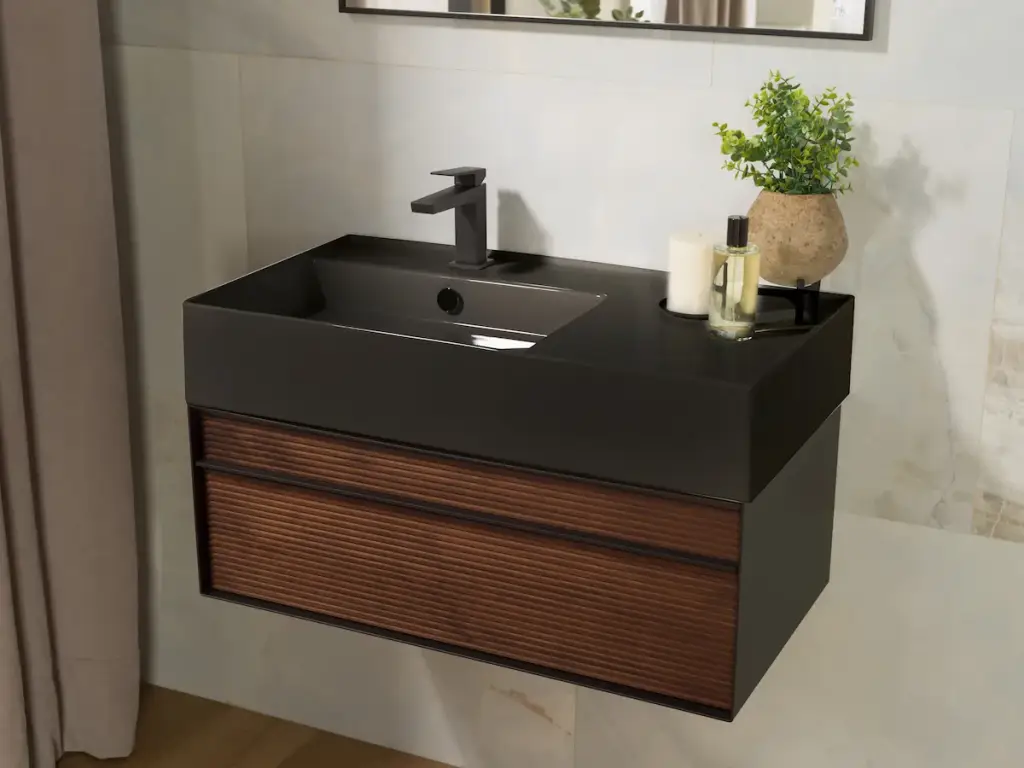NOKEN ESSENCE C Раковина подвесная с чашей слева, 80 см, с переливом, черный