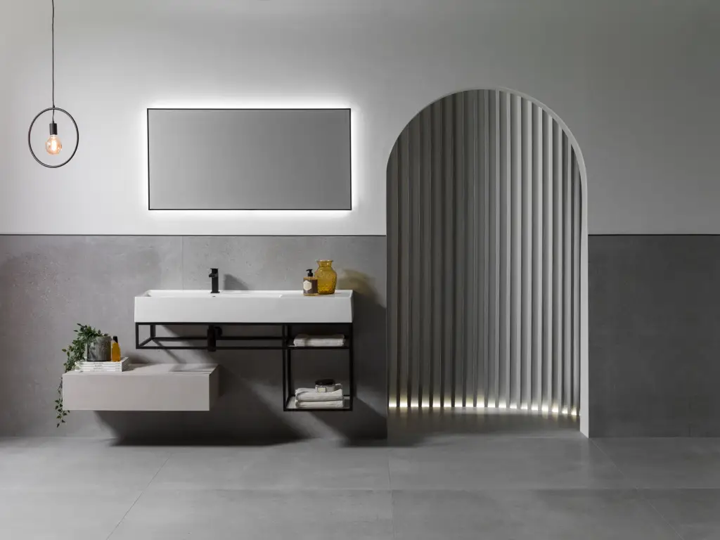 NOKEN PACK ESSENCE C Комплект 80 см: зеркало, тумба, раковина, смеситель, белый/чёрный/фасад орех