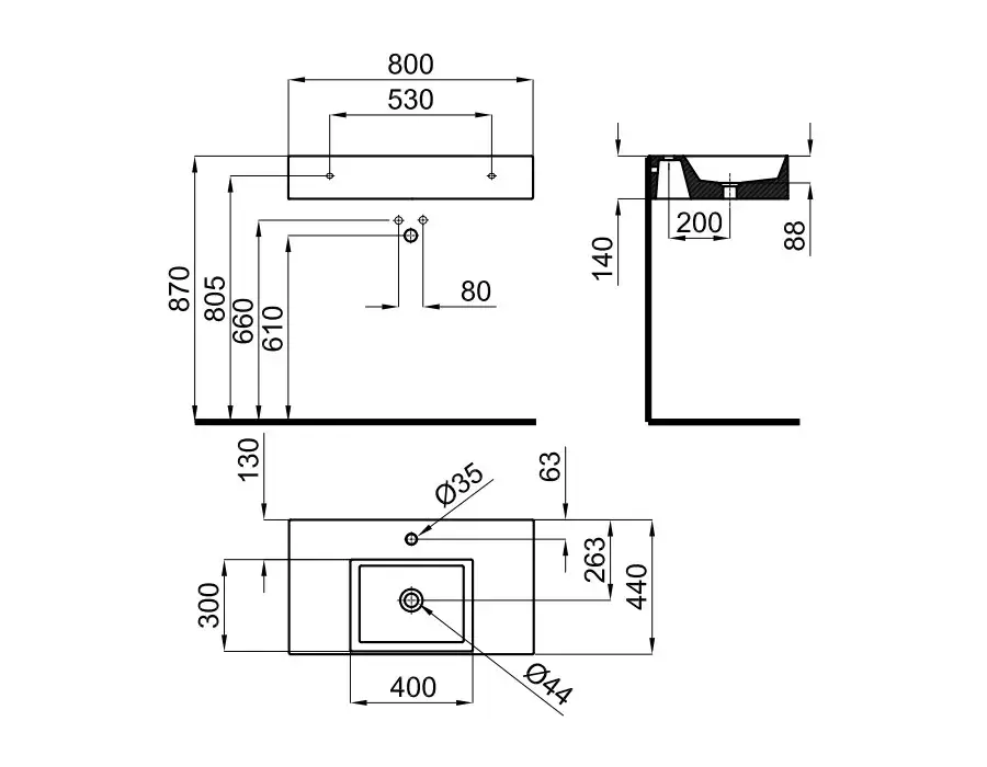 NOKEN ESSENCE C Раковина подвесная с углублением в центре 80 см, белый